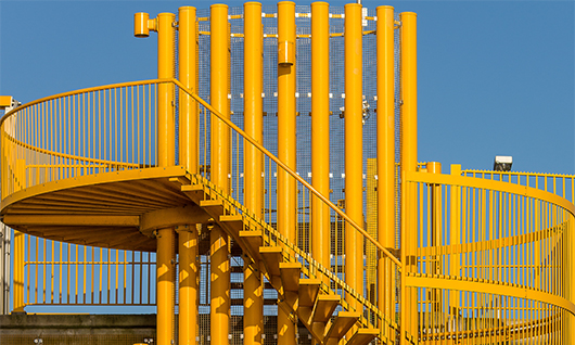 • Транспортные узлы и логистические комплексы. На объектах с интенсивными людскими и грузовыми потоками настил применяется для организации служебных галерей, переходов и смотровых площадок. Его открытая структура не препятствует распространению света и воздуха, что может положительно влиять на энергоэффективность здания. Для задач архитектурного согласования компания предлагает опцию нанесения полимерного покрытия поверх цинкового слоя (дуплекс-система), позволяющую интегрировать элемент в цветовую схему объекта.
